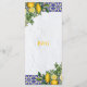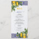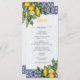 Blue White Yellow Mediterranean Tile Lemon Wedding Menu