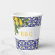 Blue White Yellow Mediterranean Tile Lemon Wedding Paper Cups