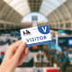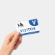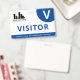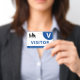 Horizontal visitor badge with a simple design in white and blue. A large white V makes it easy to quickly recognize the visitor. Personalize with your business logo.