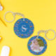 The front showcases a clean white frame for your custom monogram and name, while the back is fully customizable—simply upload your favourite photo to create a truly personal keepsake. Whether it's a family portrait or a snapshot of a beloved pet, this durable keychain makes a stunning gift for gardeners, bee lovers, or anyone who appreciates a modern botanical aesthetic.