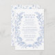 Dive into contemporary elegance with this details card tailored for a romantic bohemian wedding adorned with blue wildflower motifs. Highlighting a delicate wreath of blue floral blooms, this customizable card allows you to personalize your wedding experience. Enhance its modern appeal by adding the names of the bride and groom on the reverse side, elevating the overall sophistication of your wedding festivities.