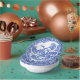 The look of classic, vintage Blue Willow pottery with a unique, modern twist! On a vintage - look crackle design background, my original, hand painted oriental -look island scene includes stylized trees, rocks and a temple building, with blue and white floral bunny rabbits leaping on the lawns. Perfect for any rabbit or animal lover or for anyone who loves blue and white pottery and decor. Whimsical, unique, original artwork & design by Tuzi Williams.
