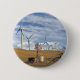 Photo of a hilltop crowned my modern windmills. In the foreground is an old windmill at a watering trough for the sheep.