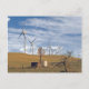 Photo of a hilltop crowned my modern windmills. In the foreground is an old windmill at a watering trough for the sheep.