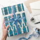 A blue all over print wine bottle design wrapping paper, gift tags also available in this design.
