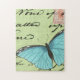 Blue-Winged Butterfly on Teal Postcard Jigsaw Puzzle