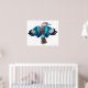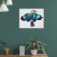 Original fine art design of a flying Blue Winged Kookaburra from Australia by designer/illustrator Carolyn McFann printed on a quality poster for bird lovers.