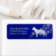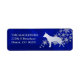 Cette étiquette d'adresse de retour distinctive présente une silhouette argentée de chien de bétail australien devant un jet de flocons de neige argentés ornés. L'image est placée sur un arrière - plan bleu profond dégradé. Votre texte personnalisé est en argent correspondant à gauche de l'image.