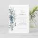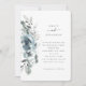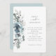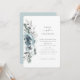Blue Winter Florals Wedding. Modern watercolor winter foliage and flowers for winter and holiday weddings, in soft teal and powder blue run along the left hand side and typography to the right. A coordinating blue is on the back. Easily personalise the text to your own details.