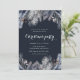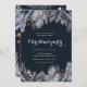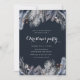 Winter foliage illustration on the top and bottom in shades of grey and blue paired with a white script for all your information on a dark blue background. Check our store for more Christmas party invitation options.