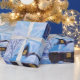 This cozy winter landscape design wrapped around gifts will look amazing beneath your Christmas tree. Perfect for people who love winter scenes with a cozy cabin nestled in the snow-covered trees.
