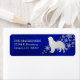 Cette étiquette d'adresse de retour distinctive présente une silhouette argentée représentant un chien de Terre-Neuve devant un jet de flocons d'argent orné. L'image est placée sur un arrière - plan bleu profond dégradé. Votre texte personnalisé est en argent correspondant à gauche de l'image.