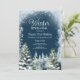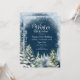 Blue Winter Onederland Silver Snowflakes Pine Tree Birthday Invitation