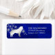 This distinctive return address label features a silver silhouette Siberian Husky image in front of a spray of ornate silver snowflakes. The image is placed on a gradient deep blue background. Your custom text is in matching silver at the right of the image. Beautiful!
