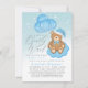 Blue Winter Sleepy Bear Balloons Boy Baby Shower Invitation