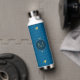 A classic houndstooth design in not-so-classic shades of cerulean blue creates a fun and updated pattern with a final accent of a metallic-like gold mixed in to create a design that will really pop. Customize the monogram with your initial to create a water bottle that is uniquely yours.
