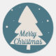 Blue with white pine and snowflake Christmas tree Classic Round Sticker