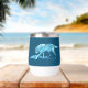 A stylized blue wolf (Canis lupus) casts a shadow as it passes through snowy terrain. Customise by adding your own text on the reverse side.
