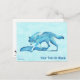 A stylized blue wolf (Canis lupus) casts a shadow as it passes through snowy terrain. Add your own text.