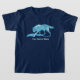 A stylized blue wolf (Canis lupus) casts a shadow as it passes through snowy terrain. Add your own text.