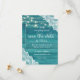 Send a save the date card to get your guests ready to celebrate your wedding or party with this blue wood, lace, and string lights country floral save the date card.