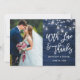 Modern Brush Script, Rustic Blue Wood and String Lights with Mason Jars, With Love and Thanks Wedding Photo Thank You Card
