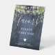 Blue Wood String Lights Greenery Boho Favours Pedestal Sign