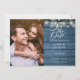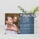 This rustic save the date card features string lights, your special photo and elegant typography on a rustic blue wood panels background. Designed by Thisisnotme©
