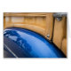 The iconic S. California palm trees reflected in the fender of a classic blue Woody.