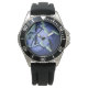 Has heft and feel of expensive stainless steel quartz wrist watches. Solid construction and good looks. Although it had a really top quality rubber strap, I substituted a stainless steel "Shark" style mesh strap, which I think is the most comfortable strap available. Perfect. True colors of original image. Clear, crisp image precisely aligned and spaced.