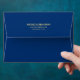 Dark blue and yellow world map wedding envelope for a destination wedding.