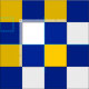 Fabric with seamless blue, yellow and white chequered pattern in colours of flag of Bosnia