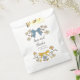 Boho bow theme bridal shower favour bag featuring hand drawn illustration of blue and yellow ribbon and flowers.