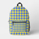 Blue Yellow Chequered Diamond Pattern Printed Backpack