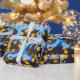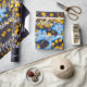 Let your holiday spirit fly high with our wrapping paper. Combining an abstract theme with a vibrant blue and yellow palette, it is sure to make your gift sparkle. Against a dark background, the myriad tiny lights in the form of stars give it a festive appeal. With Christmas greetings gracing the artistic design, it’s perfect for those who like to send their holiday wishes in a stylish way.