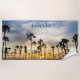 Blue & Yellow Cloudy Palm Trees Sunset Beach Towel