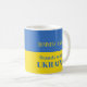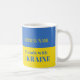 Show your business' support for Ukraine with this inspirational mug. The design features blue and yellow national flag of Ukraine. The text is customizable so you can add your own business name.