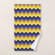 A hand towel featuring a cute, ombre pattern design of chevrons in blue, yellow and gold.