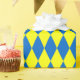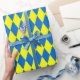 Blue Yellow Harlequin Checkered Design Wrapping Paper