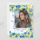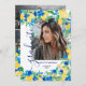 Modern chic yellow lemons and blue floral watercolor graduate script open house photo graduation. Add 4 of your favourite photos with an elegant script calligraphy and photo grid collage.