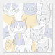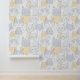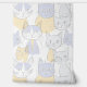 Blue Yellow Mid-Century Abstract Cat Pattern Wallpaper