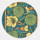 Blue Yellow Nasturtium Flower Nouveau Pattern Classic Round Sticker