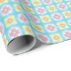 Blue yellow pink 60s 70s floral chequered pattern wrapping paper