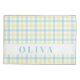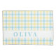 Add a customized touch to your home with this beautiful personalized pillowcase featuring a sweet tartan plaid pattern in soft pastel blue and yellow. The light and airy design includes a crisp white band for prominent personalization. Easily customize it with a name or initial to create a charming, unique bedroom accent. It's an ideal personalized gift for children's rooms, dorms, housewarmings, or simply refreshing your current decor.