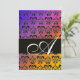 BLUE YELLOW PURPLE BLACK DAMASK MONOGRAM ,white Invitation