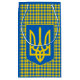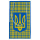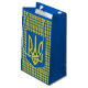 Rustic Ukraine gift bag featuring blue and yellow tartan / plaid styled with Ukrainian Flag colours pattern with prominent Tryzub Coat of Arms.