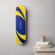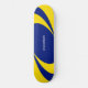 Blue and yellow wavy lines with blue centre and calligraphy Skateboard.