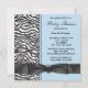 Elegant baby blue zebra and black bow tie baby boy shower invitation template. Add your details to the front and back of this adorable blue zebra baby shower invitation by simply choosing the "Customize it!" button to begin adding your event details, font style, font size & colour, and wording. Please note - all of the invitation designs you will find on Zazzle are printed graphics with no actual jewels, bows, raised, embossed, or added parts or pieces.
