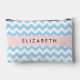 Blue Zigzag, Blue Chevron, Wave Pattern, Your Name Accessory Pouch