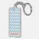Blue Zigzag, Blue Chevron, Wave Pattern, Your Name Keychain